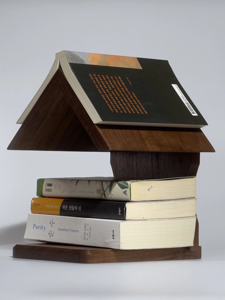 상단에는 읽고 있는 책을 그대로 덮어둘 수 있어요. 하단에는 두께에 따라 최대 6권까지 쌓아둘 수 있습니다. 둥글게 마감된 바닥 모서리는 책 긁힘을 방지합니다.
