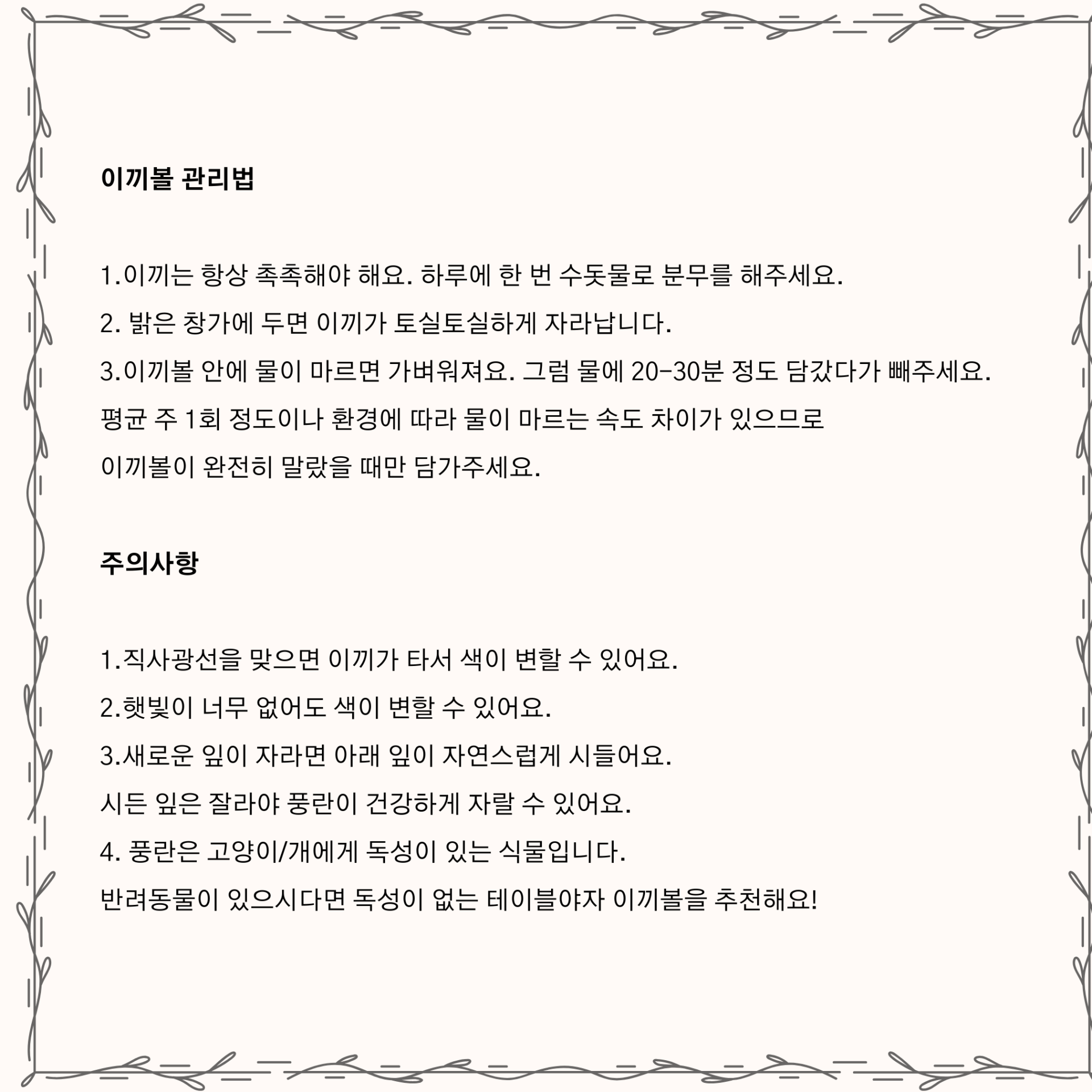 하단 상세보기에서 관리법과 안내사항을 참고해 주세요.